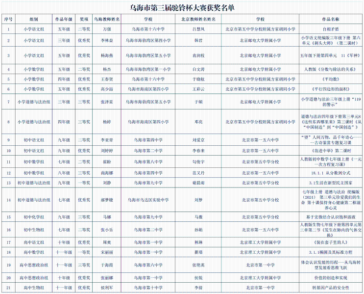 关于印发《乌海市教育工委 乌海市教育局...