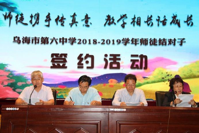 为了充分发挥名师骨干教师的引领作用,帮助青年教师更快更好地成长,全面提高教育教学质量,乌海市第六中学于2018年9月14日下午在报告厅隆重举行“师徒结对”签约仪式。校长燕林、副校长裴俊琴、教科研处主任赵继文、刘志华出席,教科处刘志华主任主持仪式。